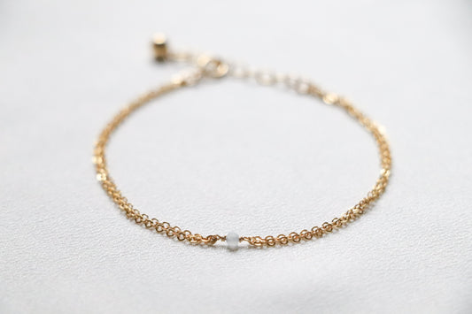 Chaîne de cheville Douce – Perles d’eau douce & or laminé